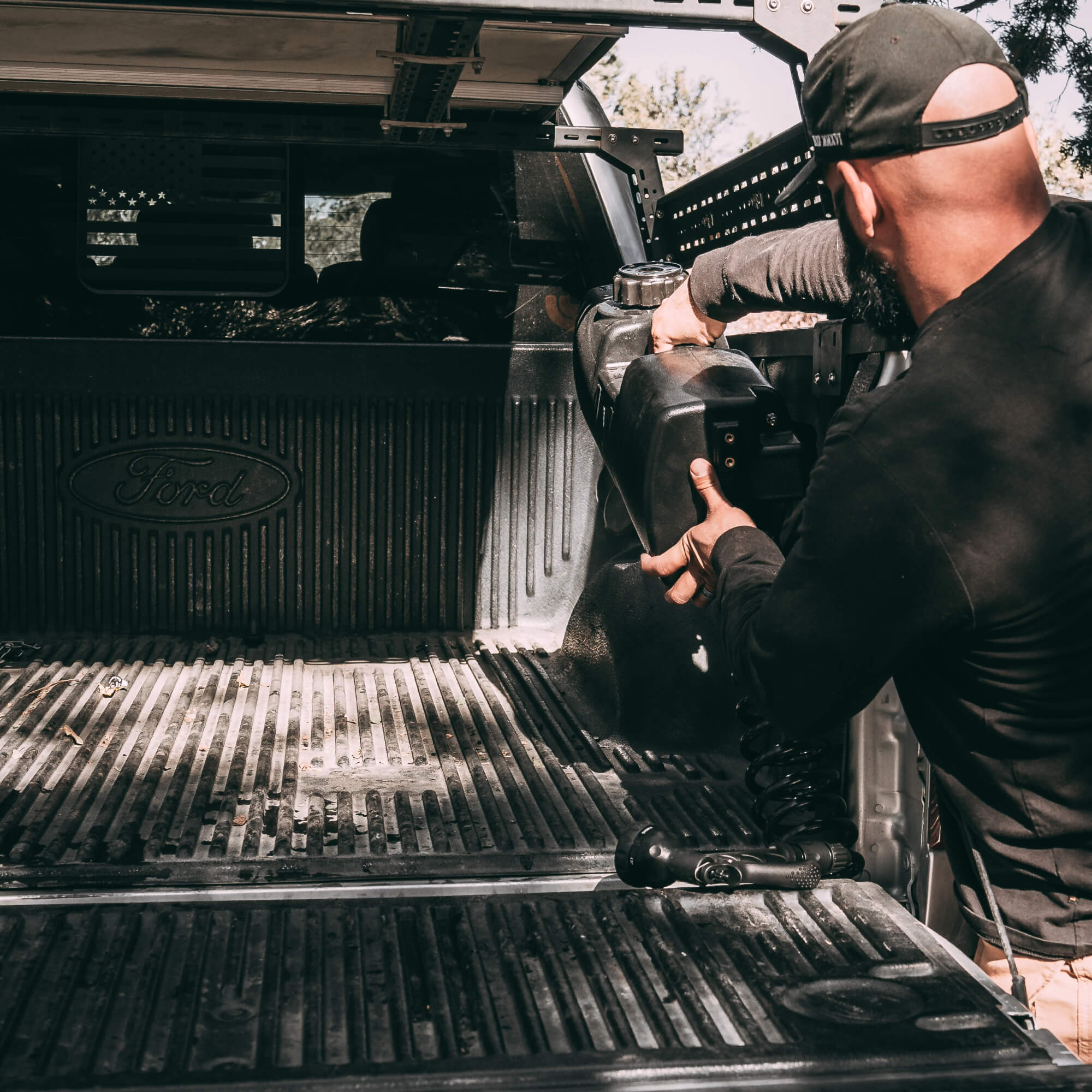 Easily attaches your 4 Gallon Day Tank to any Ford F-Series Truck 2015 or newer!
